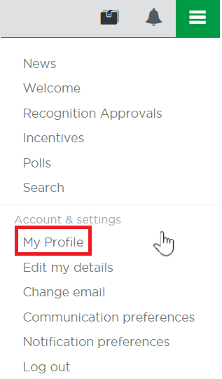 - Using the navigation bar, you can update your profile by selecting the main burger menu in the top right corner.