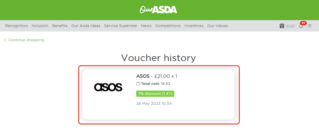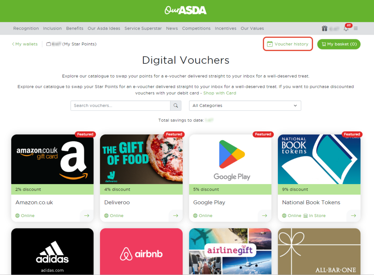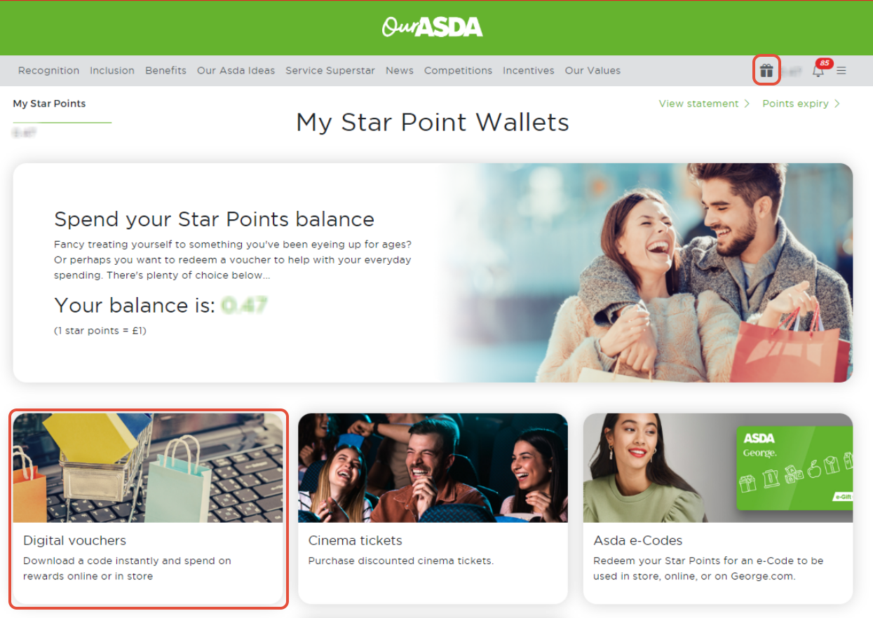 You'll be able to access your digital voucher(s) by clicking on the gift icon and selecting "Digital Vouchers" and then "Voucher History"